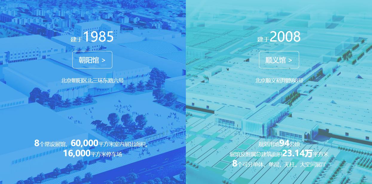 中展集團(tuán)擁有兩座展館,其中中國國際展覽中心(朝陽館)于1985年10月建成,被評為北京20世紀(jì)80年代十大建筑之一,室內(nèi)外展覽面積約6萬平米。2008年,中國國際展覽中心(順義館)一期展館在北京順義區(qū)落成并投入使用,室內(nèi)外展覽面積約16萬平米。兩座展館地理位置優(yōu)越、配套設(shè)施齊全,是中國開展國際貿(mào)易和技術(shù)交流活動(dòng)的重要場所。