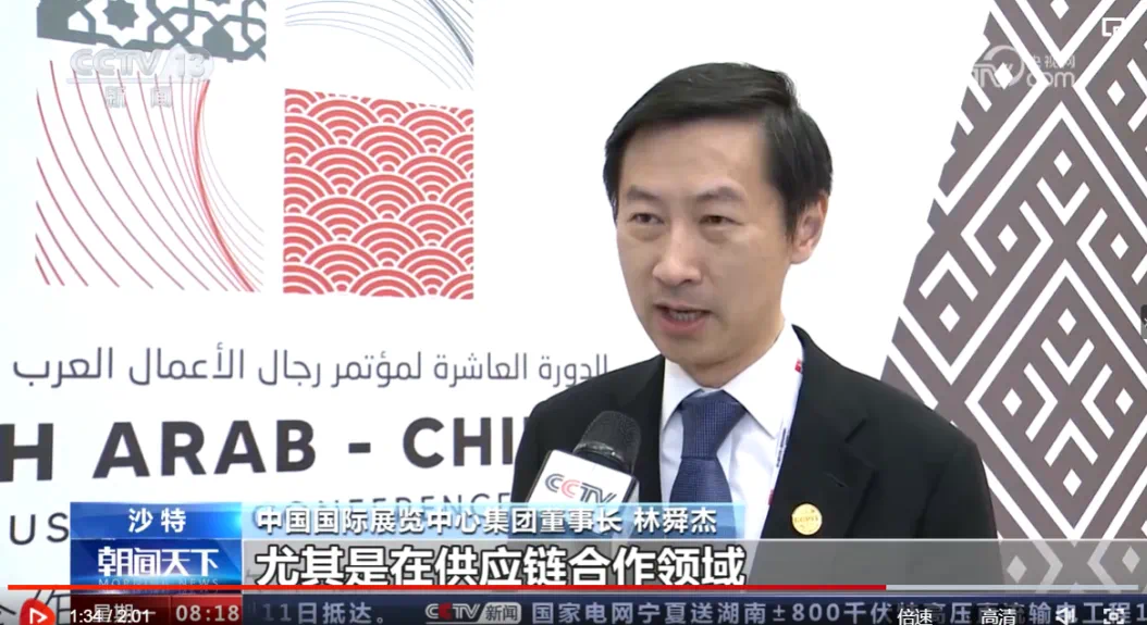 此外,林舜杰董事長(zhǎng)還接受了中央電視臺(tái)、半島電視臺(tái)、阿拉伯新聞報(bào)、沙特廣播電視臺(tái)等中外媒體采訪,積極評(píng)價(jià)中阿供應(yīng)鏈合作前景,并向阿拉伯各國(guó)企業(yè)家和專業(yè)觀眾發(fā)出鏈博會(huì)邀請(qǐng)。