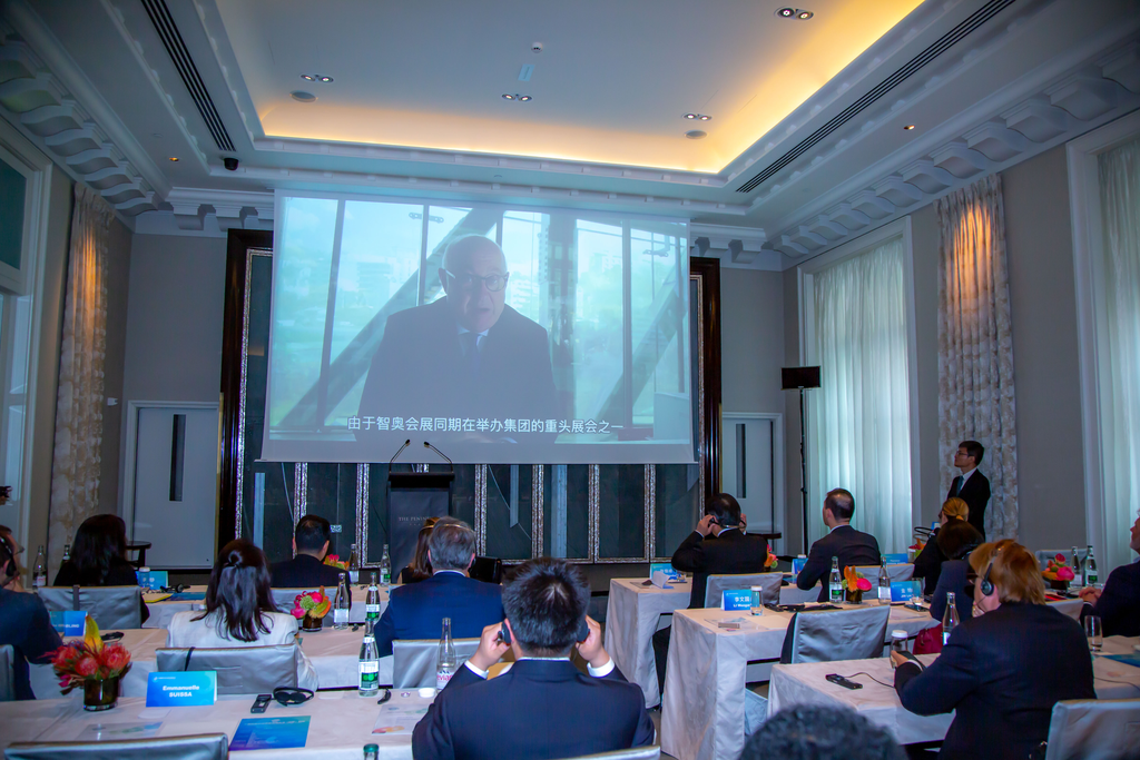 在場中法嘉賓共同觀看了鏈博會宣傳片。