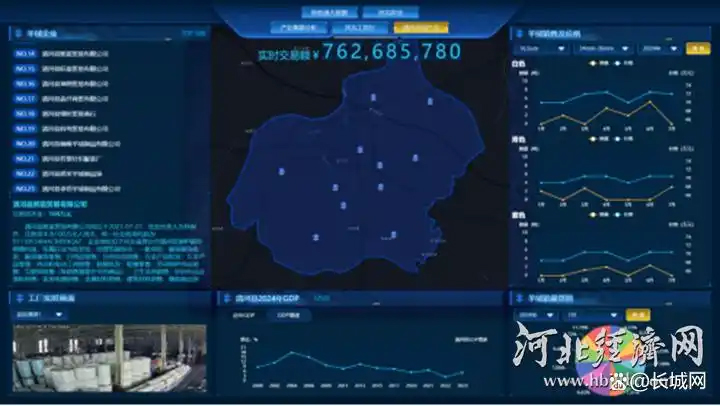 走進(jìn)河北交投怡亞通,記者看到,藍(lán)色的電子大屏上各版塊業(yè)務(wù)的訂單調(diào)度信息不停跳動(dòng)著,上面展示著333個(gè)縣域產(chǎn)業(yè)集群、107個(gè)重點(diǎn)產(chǎn)業(yè)、86個(gè)規(guī)模超百億產(chǎn)業(yè)集群的情況??h域產(chǎn)業(yè)銷量、價(jià)格走勢(shì)、企業(yè)排名、GDP增速等可視化分析,讓人一目了然。