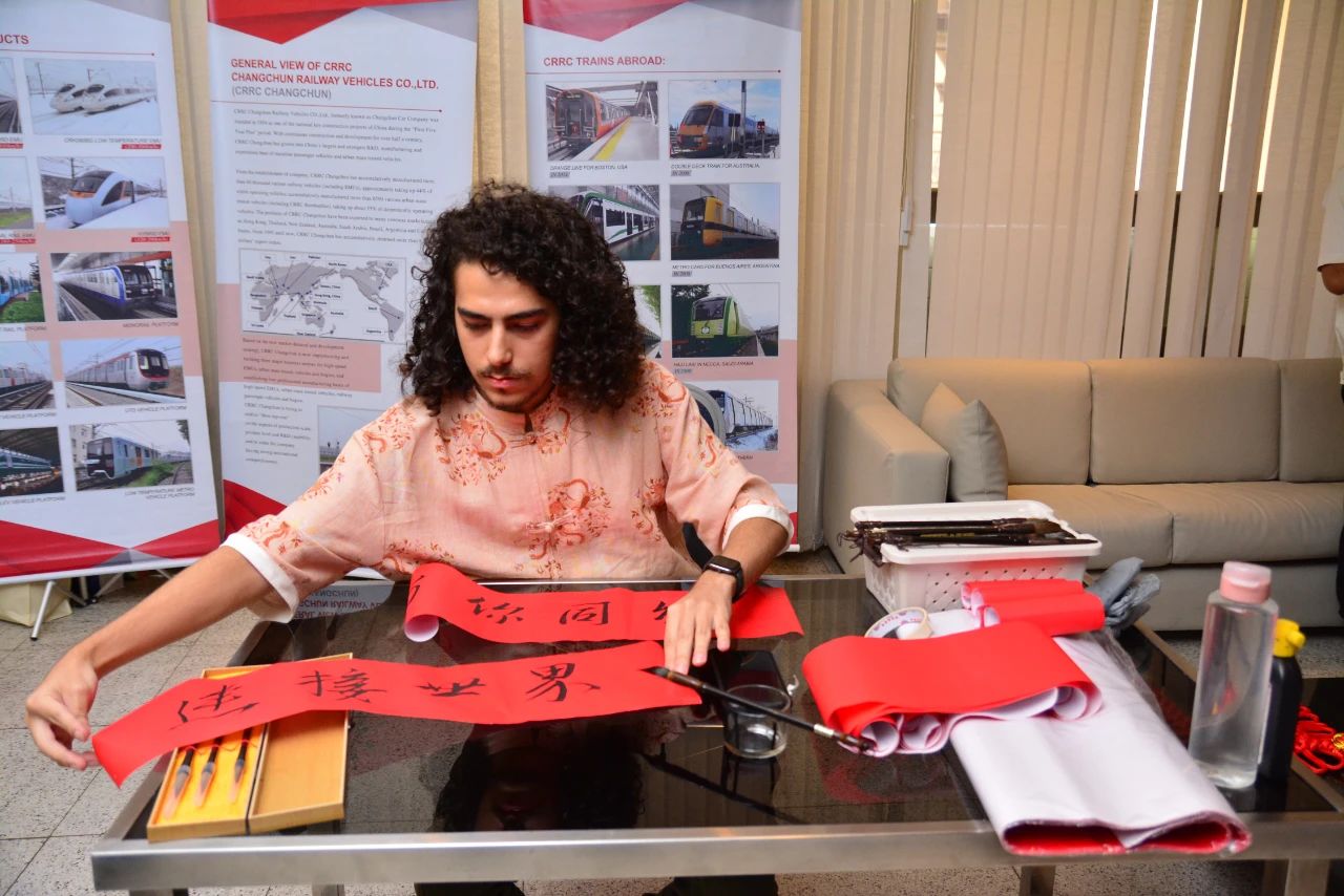 中國中車-在中巴智慧城市交流活動上,巴西青年展示中國書法藝術(shù)