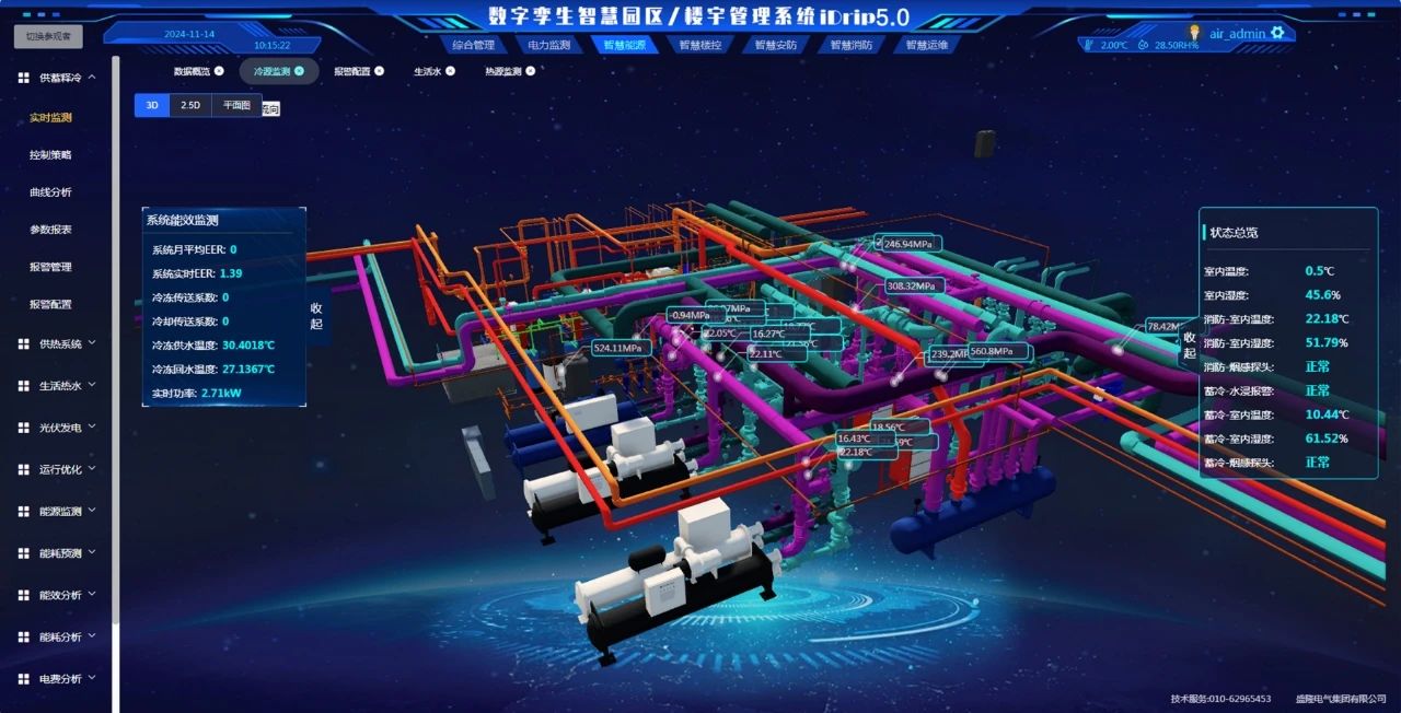 場(chǎng)景三:空調(diào)系統(tǒng)迎來“AI管家”,制冷季輕松省下35%電費(fèi)。同樣基于AI,盛隆電氣自主研發(fā)的數(shù)字孿生智慧樓宇管理系統(tǒng)iDrip 5.0,涵蓋智慧電力、智慧能源、環(huán)境安防樓控、運(yùn)維及物業(yè)管理等諸多方面,實(shí)現(xiàn)多個(gè)子系統(tǒng)集中于一個(gè)平臺(tái)進(jìn)行管理,用戶可隨時(shí)隨地掌握能耗狀況、了解設(shè)備狀態(tài)等信息,有效促進(jìn)節(jié)能降耗、智能化管理。