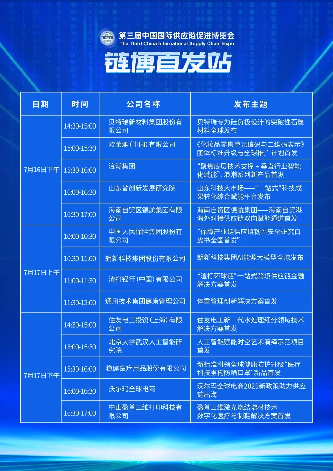 第三屆中國國際供應(yīng)鏈促進(jìn)博覽會(以下簡稱鏈博會)將于7月16日在北京中國國際展覽中心(順義館)正式開幕。首次設(shè)立的“鏈博首發(fā)站”活動專區(qū),將在16日-19日陸續(xù)連續(xù)舉辦,開啟為期四天的新品首發(fā)首秀盛宴。