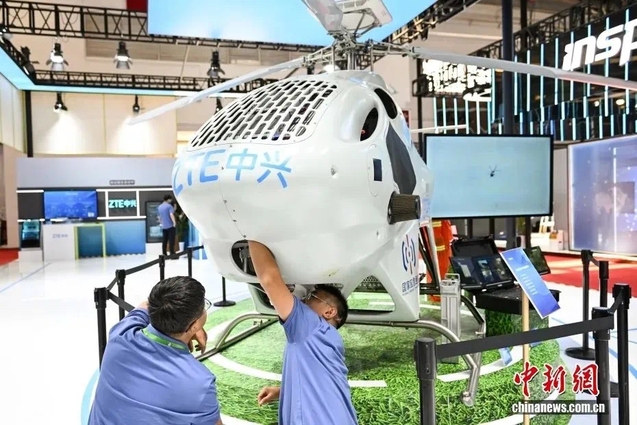 圖為中興展臺(tái)上展出的大型無(wú)人機(jī)應(yīng)急救援平臺(tái)。中新網(wǎng)記者 李駿 攝