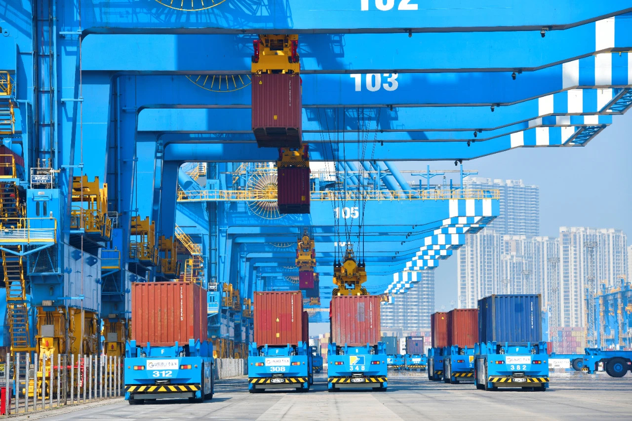 為進一步夯實供應鏈,山東港口錨定世界一流港口綜合服務商,積極建設世界級海洋港口群、構建國際物流大通道,取得的成績可圈可點。2024年,貨物吞吐量突破18億噸,集裝箱量突破4400萬標箱,位居全球第一、第二位;鐵礦石、原油、鋁礬土、糧食進口量約占全國進口總量的1/4、1/3、3/5、1/5;海向360余條航線通達全球180多個國家和地區(qū)、700多個港口,航線數(shù)量和密度穩(wěn)居中國北方港口首位;陸向建成54個內陸港,開通104條海鐵聯(lián)運班列,基礎樞紐地位持續(xù)鞏固,核心節(jié)點作用不斷放大。